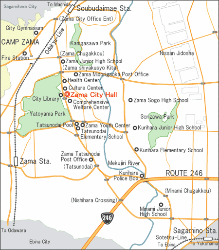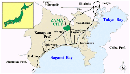 The city is located in the middle of Kanagawa prefecture. The population in the city as of February2012 is about 129,000, and the area is 17.58 km2. The US army installation, ‘Camp Zama’ occupies 3.5 % of the city area. Nearby are such famous cities as Sagamihara, Yokohama, and Kamakura. (Zamacity maps 1 and 2 are attached in the last page)