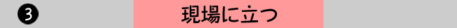 現場は「宝島」、五感を使って{現場に立つ}ことで面白くなる。5W1Hをしっかりと考える。「百聞は一見に如かず」